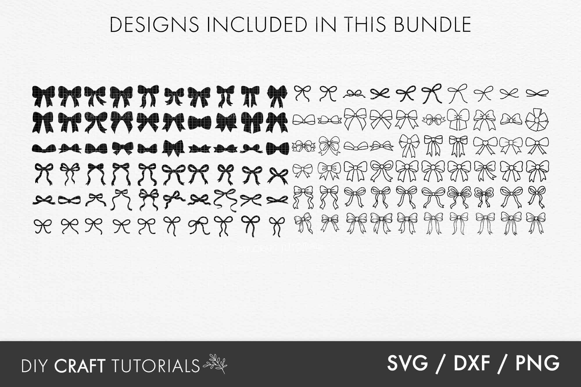 Craft the perfect bow every time! This mega bundle includes 120 different ribbon bow designs - from delicate outlines to bold silhouettes - ideal for vinyl projects, laser cutting, paper crafts, packaging, stickers, and digital art and more!