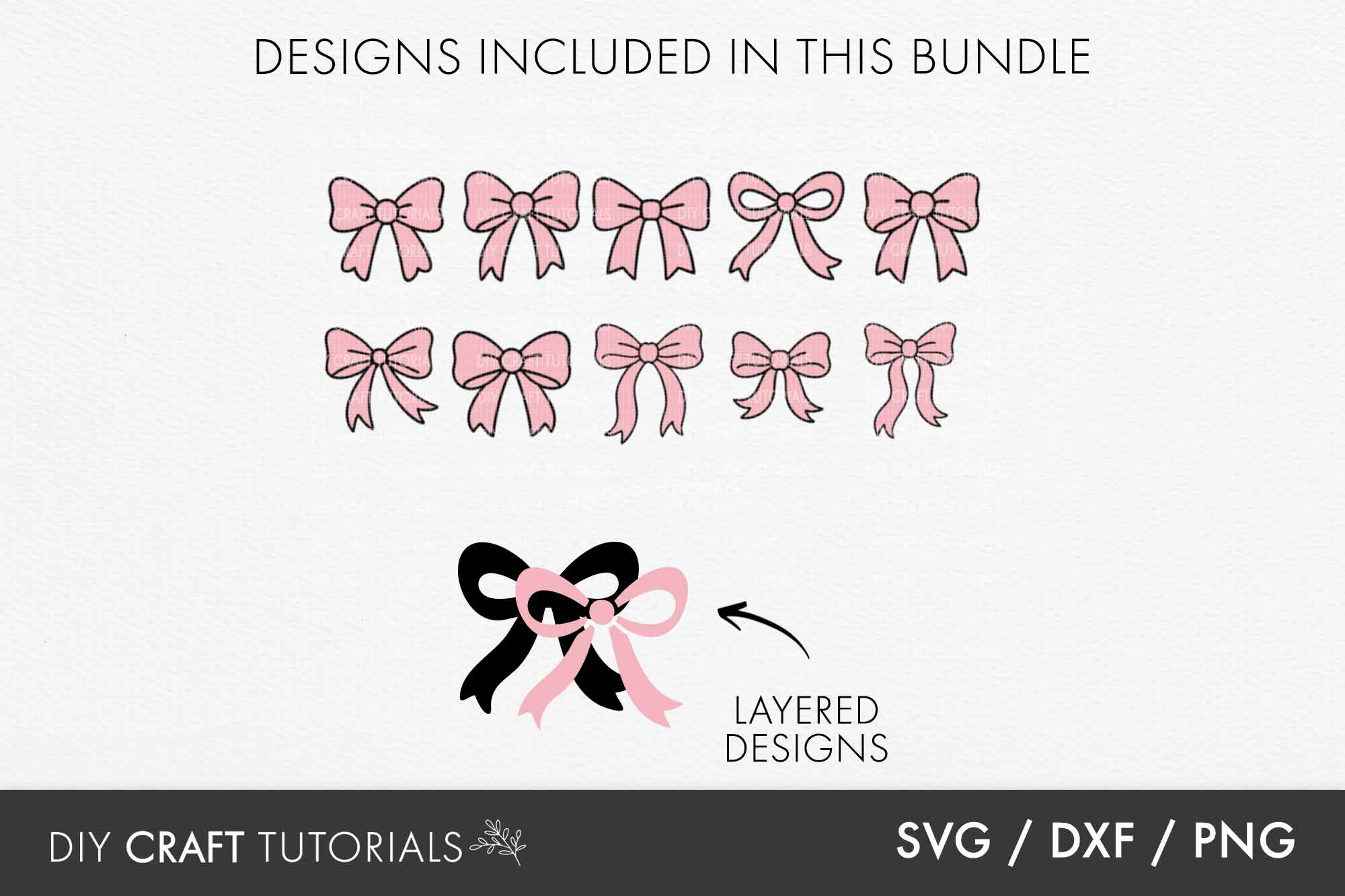 Featuring 10 unique layered ribbon designs, each cut-ready for your projects. These adorable bows work for everything from packaging and gift tags to apparel and coquette-style crafts.