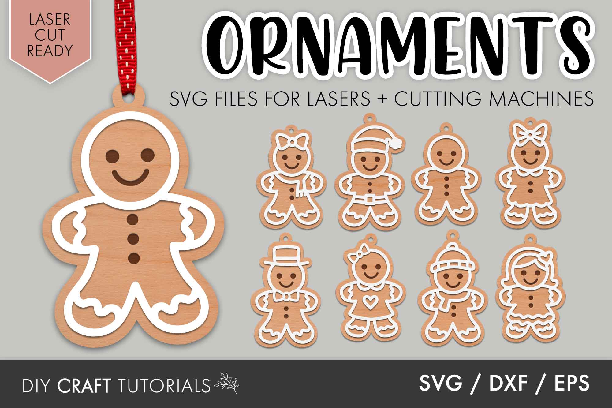 Create adorable Christmas tree ornaments with this Gingerbread Family Ornament SVG Bundle, perfect for lasers and cutting machines! This set includes 8 gingerbread people designs - each one cute, cut-friendly, and ideal for wood, acrylic, MDF, cardstock or vinyl.