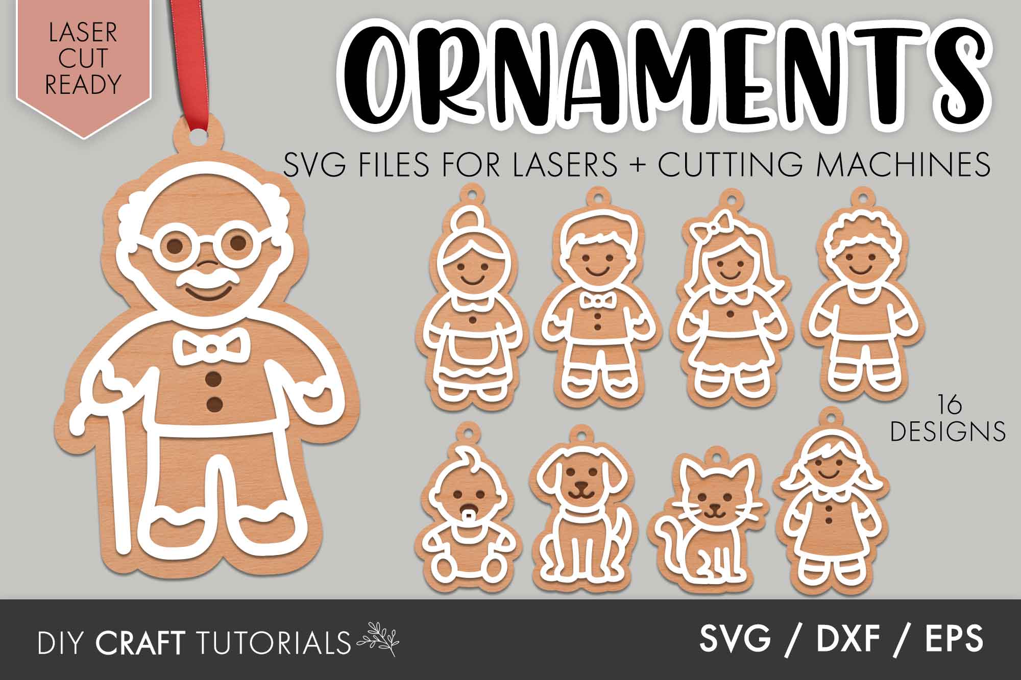 Each ornament features smooth outlines, two-layer construction, and engraving details that work beautifully on wood, MDF, acrylic, or cardstock. Great for personalised family sets, Christmas tree decorations, stocking tags, keepsakes, craft fairs, and product listings.