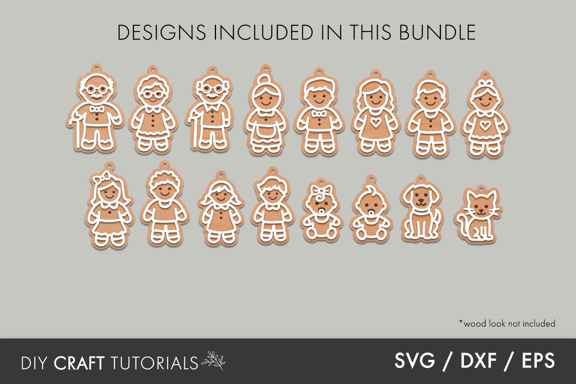 This Gingerbread Family Christmas Ornament SVG Bundle includes a small commercial license for you to sell the physical items you create with the template. Please see License info tab or click here to review our terms for how our designs may be used.