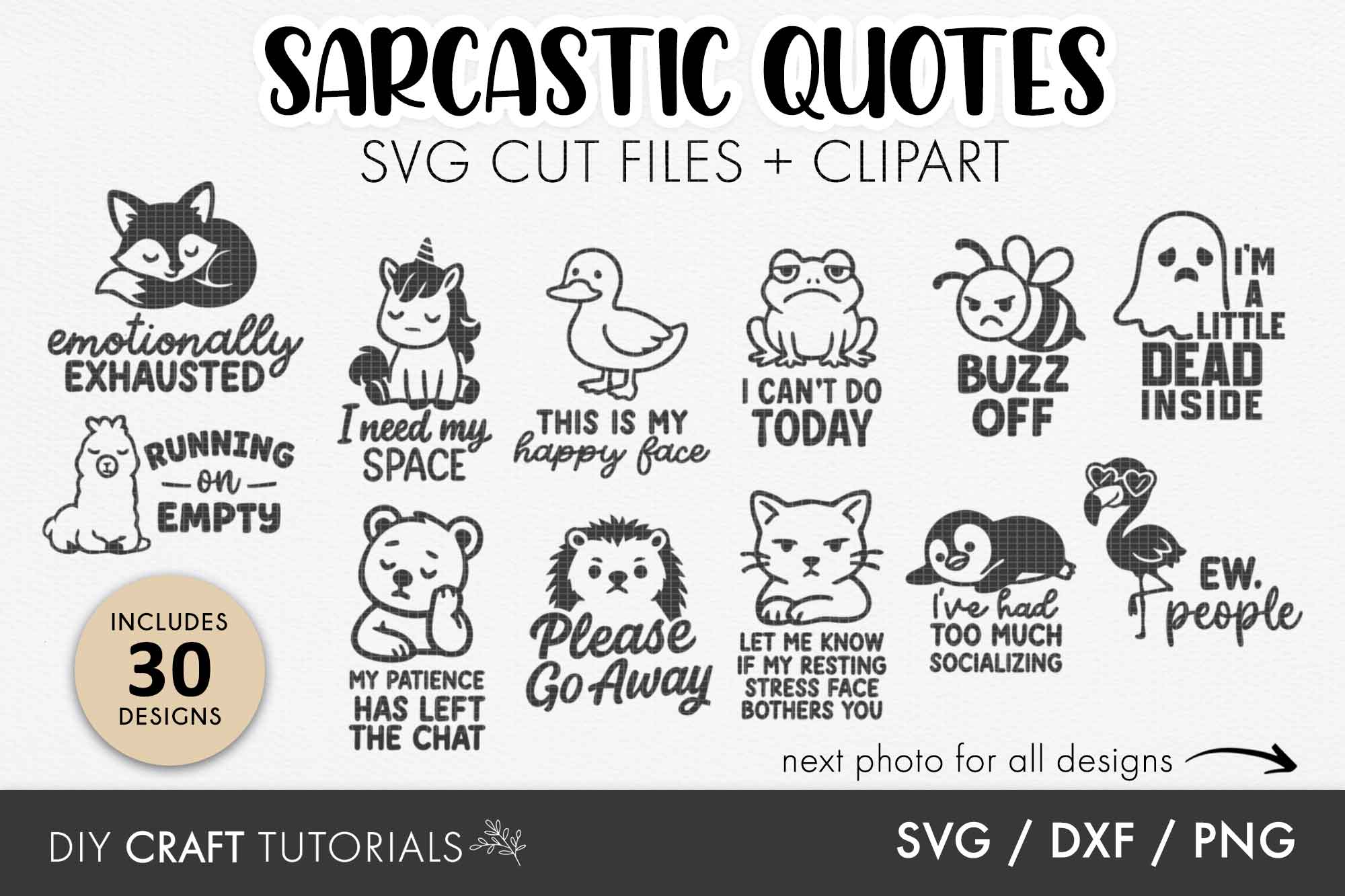 Sarcastic Quotes SVG Bundle – 30 Funny Animal Sayings for Cricut, Glowforge & Laser Cutting