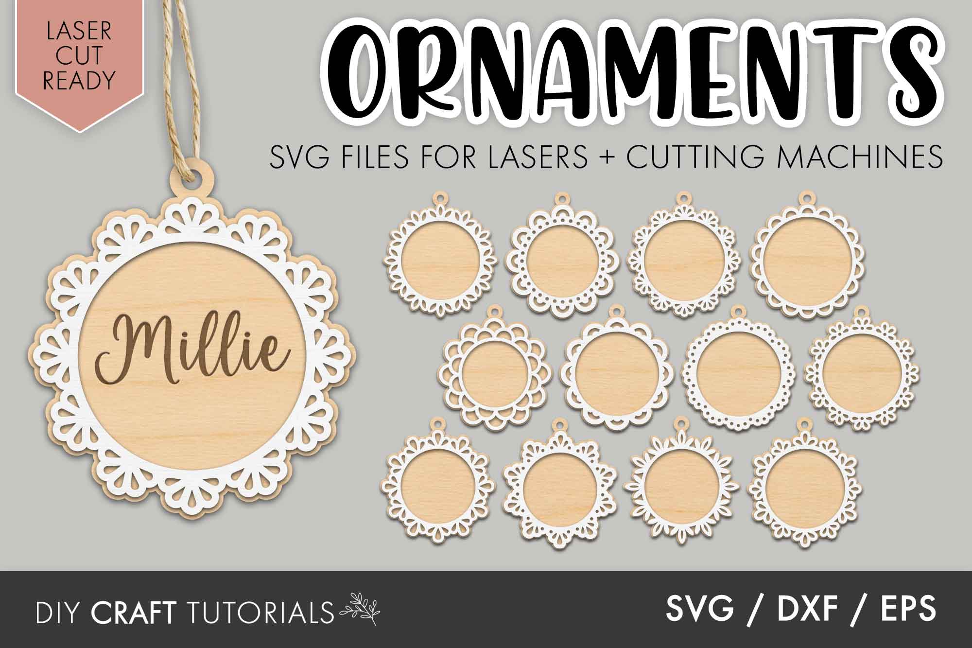 Each of the 15 lace-style ornament templates features a delicate cut-out border - ideal for engraving names, adding vinyl text, or layering with different woods or acrylics. These files are perfect for personalized ornaments, wedding favors, or holiday decorations.